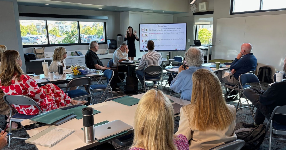 The Bonsall USD team reflects on their learning walks as a whole group.
