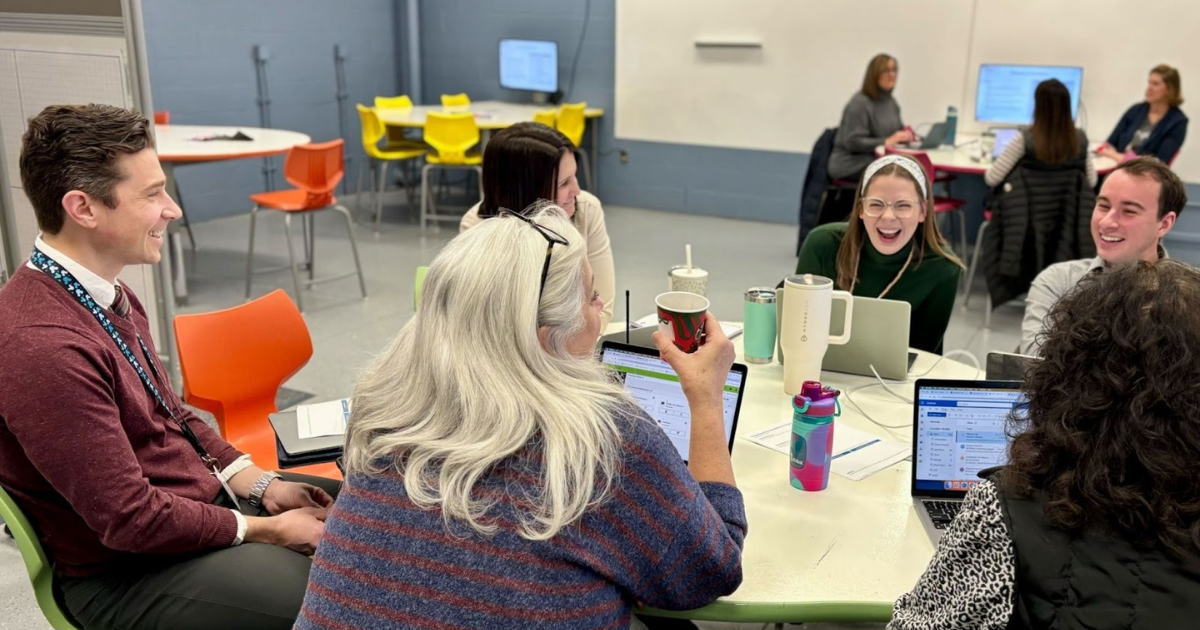 A small group debriefs their visit to a Hampton Township classroom. They align on a shared language and make meaning of what they observed.