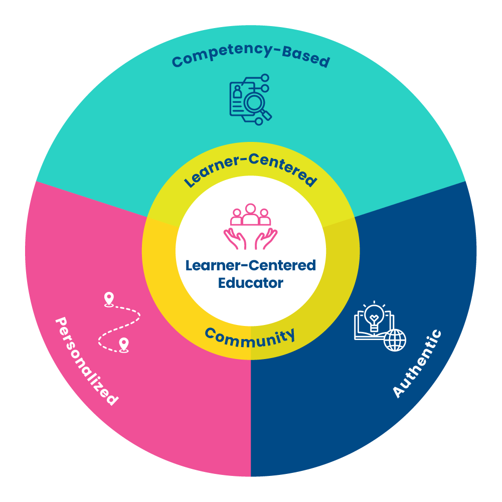 The Portrait of a Learner clearly defines the priority of whole-learner outcomes and serves as a catalyst to transform the organization’s systems, processes, and structures to support the new metrics for learner success. It is a short list of interdisciplinary learner outcomes, such as Effective Communicator, that are accompanied by succinctly stated associated competencies to ensure everyone in the ecosystem grasps how student success is defined.